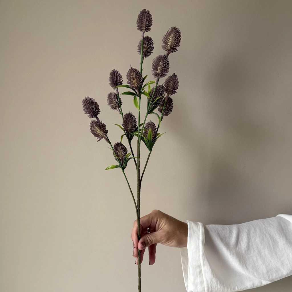 Ideal para llenar de vida y color cualquier ambiente, esta rama destaca por su delicado tono lila y su acabado detallado que imita la belleza del cardo silvestre.
